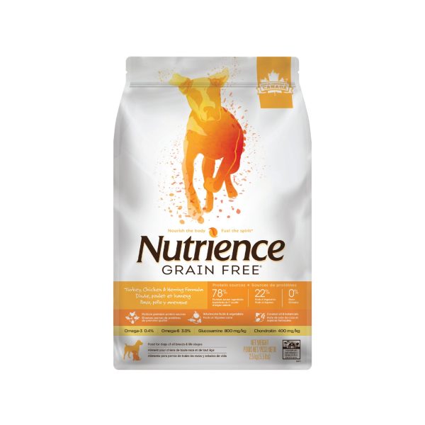 Nutrience Grain Free Turkey, Chicken & Herring dog food is made in Canada with fresh, never frozen animal ingredients which closely mimics a carnivore’s ancestral diet. In this formula, you’ll find a combination of multiple sources of poultry, fish, healthy fats, fruits, vegetables and botanicals. This kibble is completely grain-free and suitable for active or sensitive dogs, and is grain- and gluten-free.