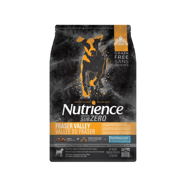 Our SubZero Fraser Valley dog food formula is prepared with fresh, never frozen Canadian sources of poultry, Pacific wild-caught fish and real freeze-dried chicken for a superior flavor that even the finickiest dogs will crave. All SubZero foods include Nutriboost, made of chicken infused with green mussels, pacific cod liver, pumpkin and Acadian kelp, and then gently freeze-dried to lock in the natural goodness of raw, providing superior flavor and promoting optimal health.